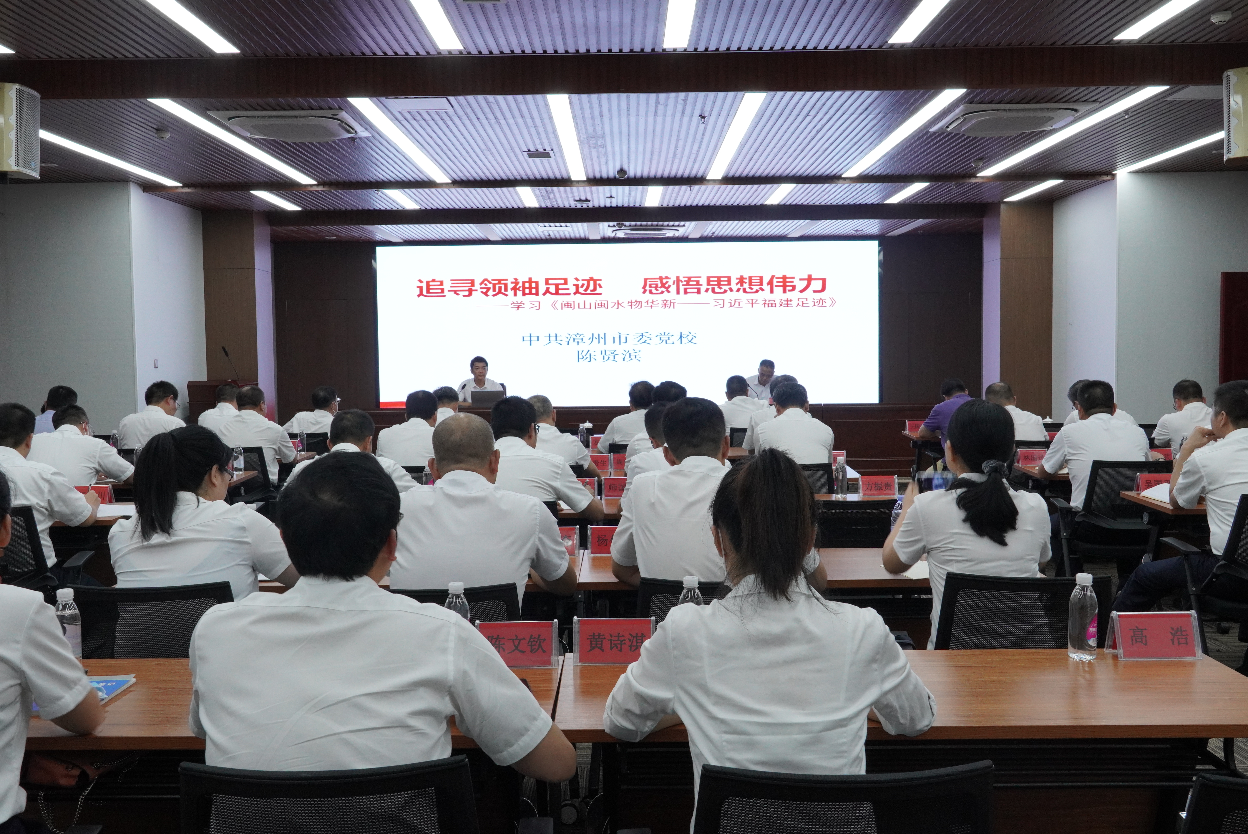 此次培訓(xùn)邀請中共漳州市委黨校哲學(xué)法學(xué)教研室主任、副教授陳賢濱同志以《追尋領(lǐng)袖足跡 感悟思想偉力》為題,重點學(xué)習(xí)《閩山閩水物華新——習(xí)近平福建足跡》,從“為何學(xué)、學(xué)什么、怎么學(xué)”等三個方面,深入淺出地闡述了習(xí)近平同志為福建改革開放和現(xiàn)代化建設(shè)事業(yè)所作出的一系列極具前瞻性、開創(chuàng)性、戰(zhàn)略性的理念創(chuàng)新和實踐探索。本次專題講座主題鮮明、內(nèi)涵豐富、思想深刻,對集團(tuán)領(lǐng)導(dǎo)干部更好地學(xué)習(xí)習(xí)近平新時代中國特色社會主義思想具有很強(qiáng)的指導(dǎo)作用。