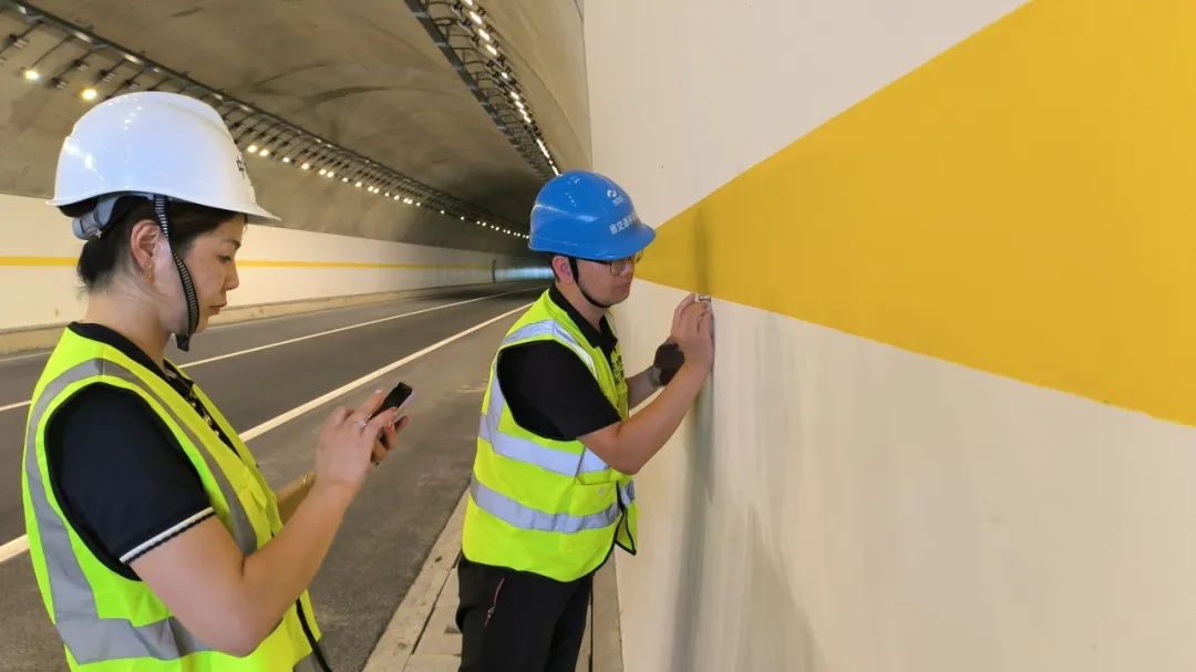 本次質(zhì)量抽檢嚴(yán)格執(zhí)行省交通運(yùn)輸廳關(guān)于推進(jìn)實(shí)施公路隧道洞壁亮化的有關(guān)標(biāo)準(zhǔn)要求,重點(diǎn)對(duì)粘結(jié)力、漫反射率、涂裝層厚度等三項(xiàng)指標(biāo)進(jìn)行實(shí)體抽檢。專業(yè)化的檢測(cè)人員和設(shè)備為此次質(zhì)量抽檢工作提供技術(shù)支持和指導(dǎo),抽檢工作順利完成。