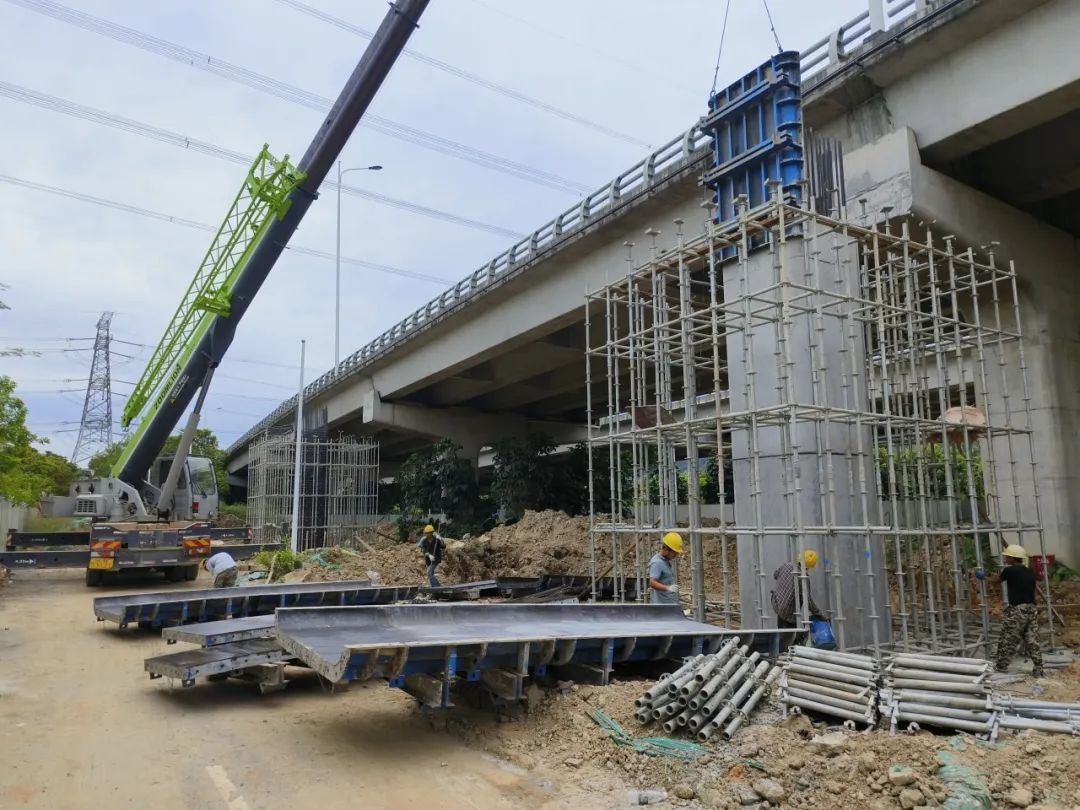 ??10月12日,南江濱路與廈漳同城大道互通節(jié)點工程右幅拼寬橋最后一道蓋梁完成澆筑,標(biāo)志著南江濱路與廈漳同城大道互通節(jié)點工程下部結(jié)構(gòu)施工全部完成。