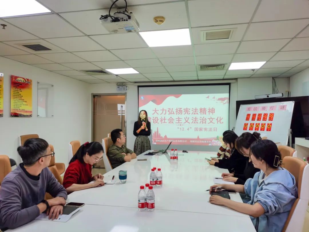 組織開展以“大力弘揚憲法精神,建設社會主義法治文化”主題活動,邀請福建國遠律師事務所徐艷微律師針對憲法、民法典等相關法律知識進行宣講,并開展法律知識燈謎競猜活動。