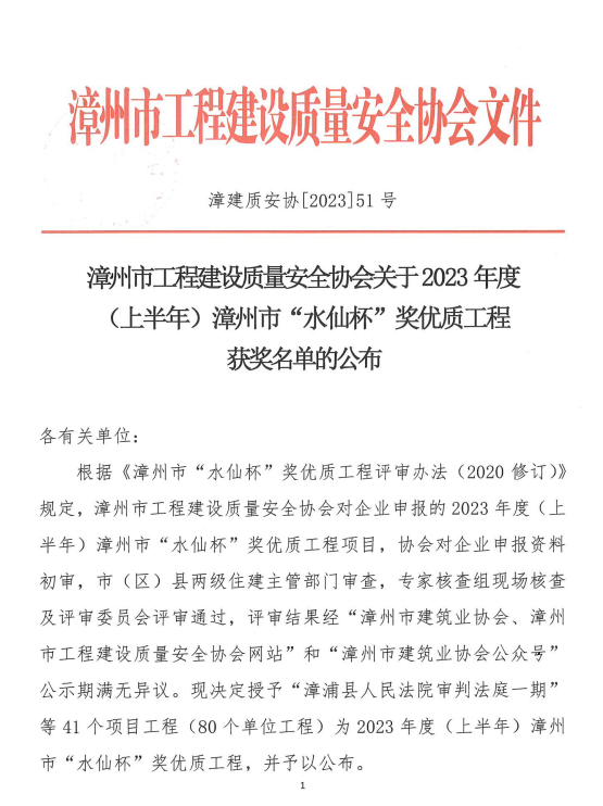 再獲殊榮!漳州市北環(huán)城路、圓山大道A2標(biāo)榮獲2023年度(上半年)漳州市“水仙杯”獎(jiǎng)優(yōu)質(zhì)工程