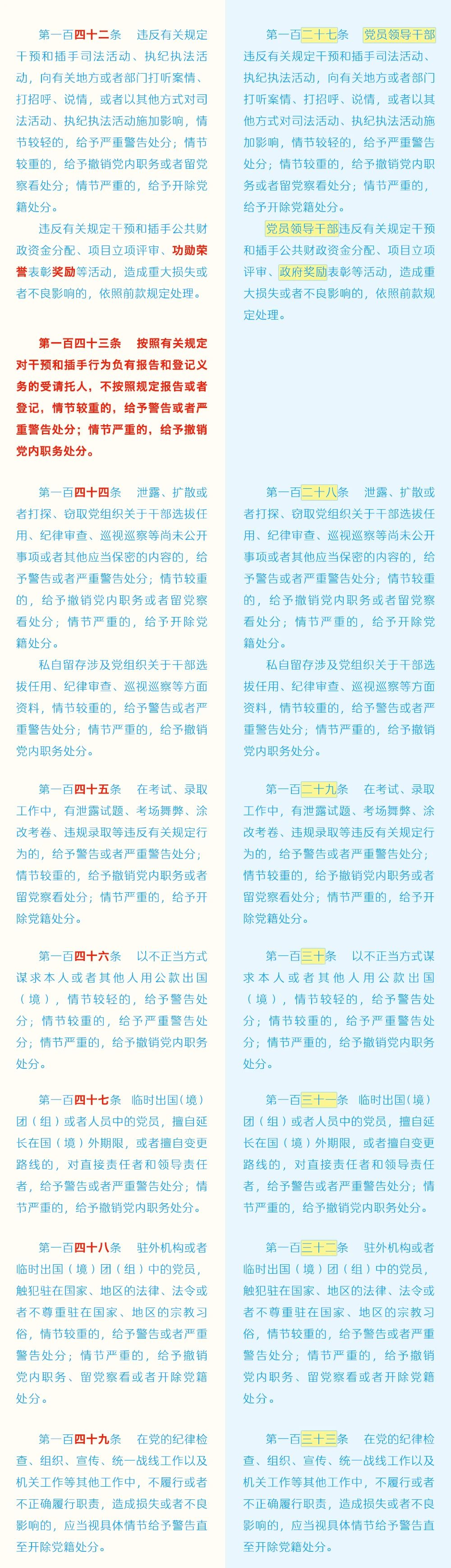 黨紀學習教育 | 《中國共產(chǎn)黨紀律處分條例》修訂條文對照表