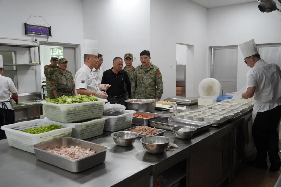 ▲走進(jìn)食堂,了解民兵隊(duì)員飲食保障情況