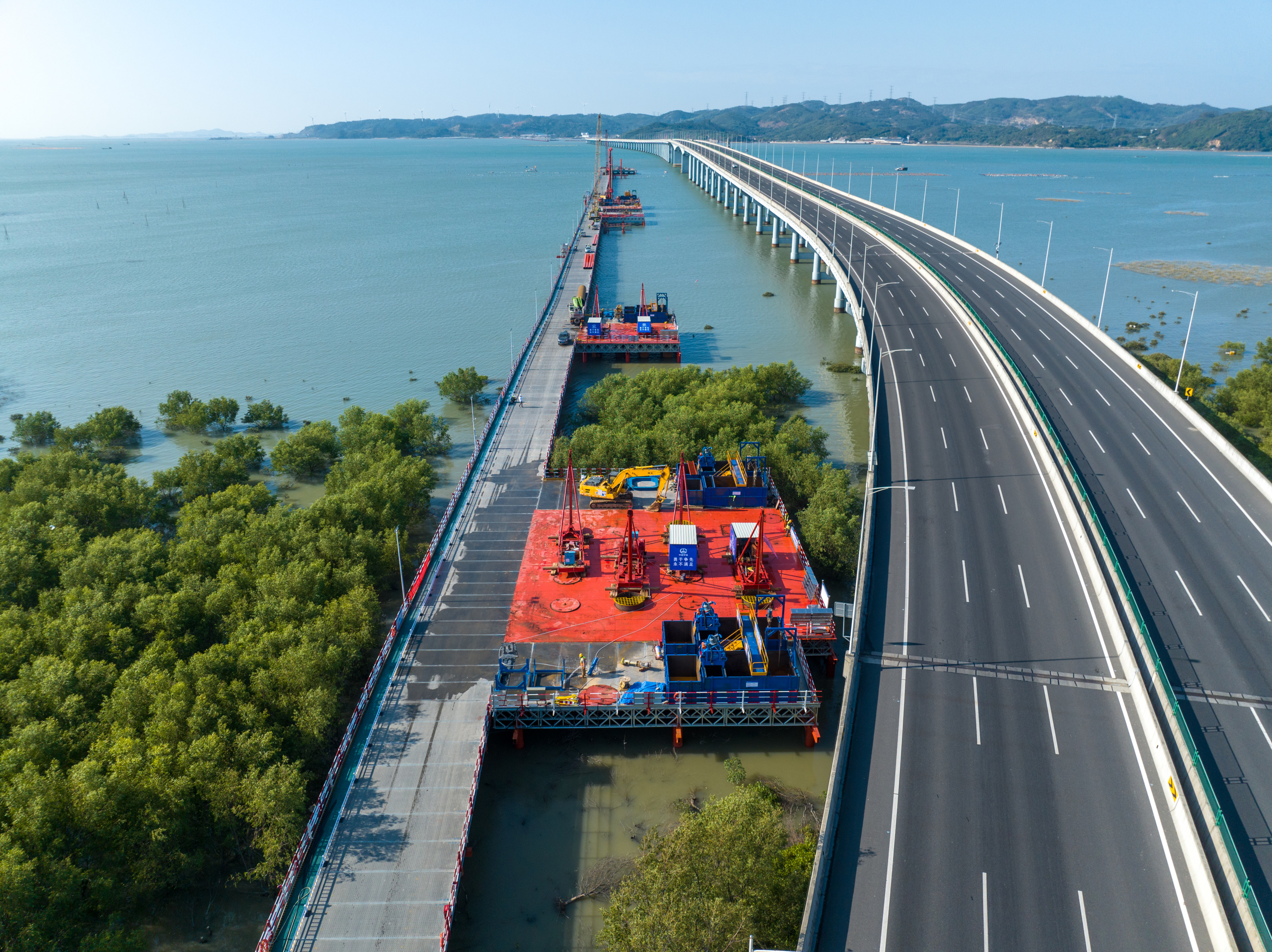 漳江灣跨海特大橋項(xiàng)目屬于漳汕高鐵福建段3標(biāo)工程,貫穿古雷開發(fā)區(qū)、云霄縣、東山縣,正線線路全長(zhǎng)27.173公里。工程主要包括橋梁、隧道、路基、制架梁等,由漳州市鐵路投資開發(fā)有限公司開發(fā)(簡(jiǎn)稱鐵投公司),中鐵四局負(fù)責(zé)建設(shè)。