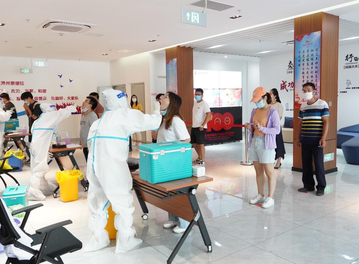 現(xiàn)場,集團(tuán)綜合部工作人員按照疫情防控要求,引導(dǎo)待檢員工,分批分組有序排隊(duì),確保核酸檢測工作高效開展。