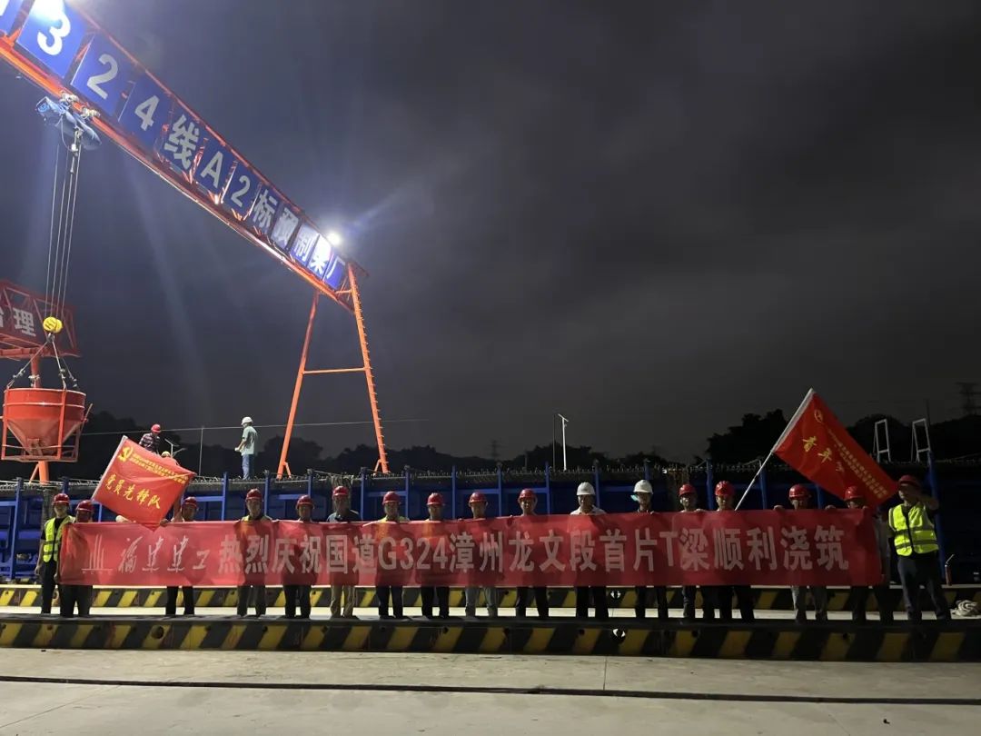 項目進展丨國道G324線角美大碑頭至龍文朝陽漳濱段A2標段首片T梁順利澆筑