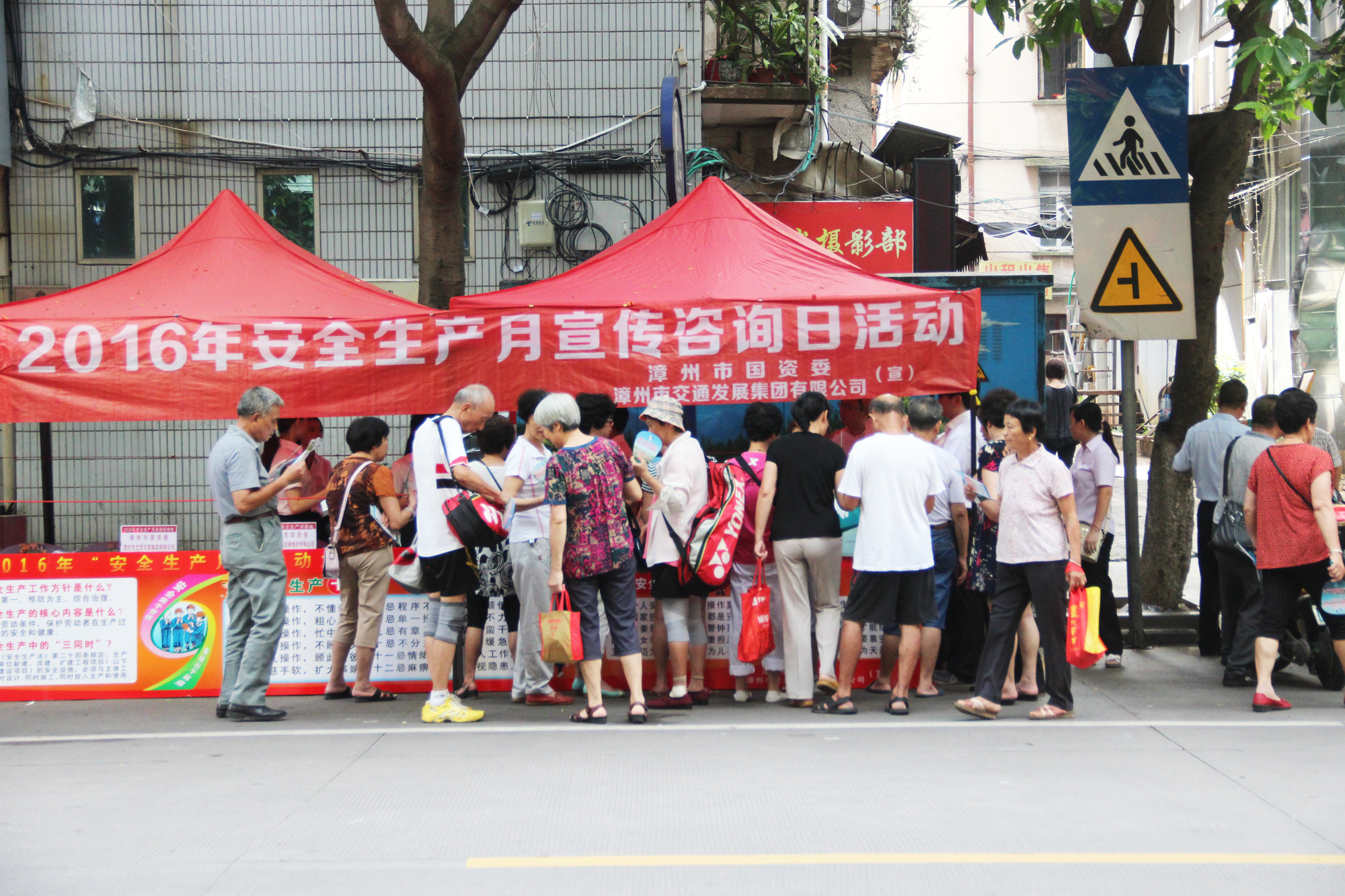 活動(dòng)現(xiàn)場(chǎng)采取展示宣傳展板、設(shè)置咨詢臺(tái)、發(fā)放安全宣傳手冊(cè)等形式,向廣大市民宣傳了安全生產(chǎn)法律法規(guī)、生產(chǎn)安全技術(shù)知識(shí)、日常消防逃生等安全常識(shí),內(nèi)容豐富,圖文并茂。現(xiàn)場(chǎng)通過搶答安全生產(chǎn)知識(shí)問題、競(jìng)猜謎語等交流互動(dòng)方式激發(fā)廣大市民的熱情,現(xiàn)場(chǎng)市民十分踴躍。工作人員還向市民發(fā)放安全手冊(cè)、漳州市區(qū)公交車運(yùn)行線路手冊(cè)等各類安全資料2000余份,接受市民咨詢200余次。