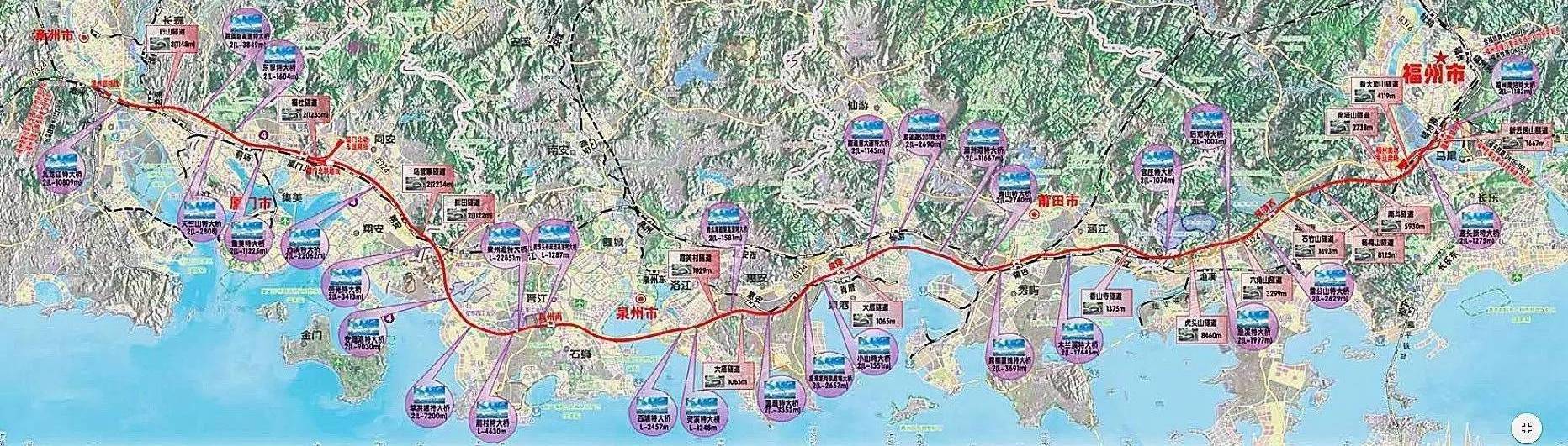 福廈(漳)高鐵既是我省首條時(shí)速350公里的高鐵,也是全國首條跨海高鐵。全線設(shè)有福州南、福清西、莆田、泉港、泉州南、廈門北、漳州等7個(gè)站點(diǎn),預(yù)計(jì)2022年通車。北端銜接合福高鐵、向莆鐵路,南端銜接廈深、龍廈鐵路,建成后將把漳州與福州間行程縮至1小時(shí)左右,并實(shí)現(xiàn)從漳州到北京一路“高鐵進(jìn)京”。